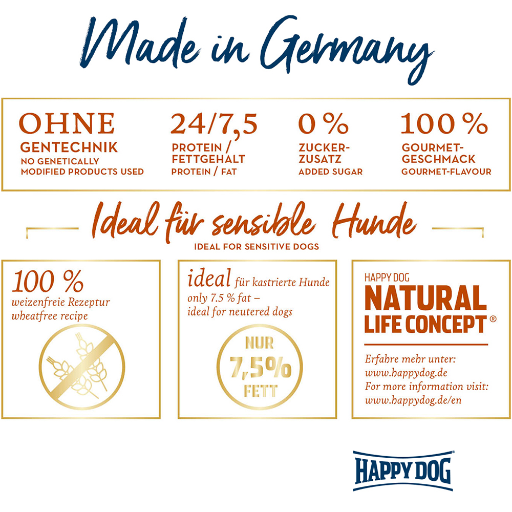 Abgerundet wird die exklusive Rezeptur durch das einzigartige Happy Dog Natural Life Concept® aus natürlichen Zutaten. Aufgrund dieser speziellen Komponenten und des besonderen Herstellungsverfahrens ist Toscana sehr gut geeignet für eine bewusste Ernährung gerade auch von sensiblen Hunden mit ihren speziellen Bedürfnissen.