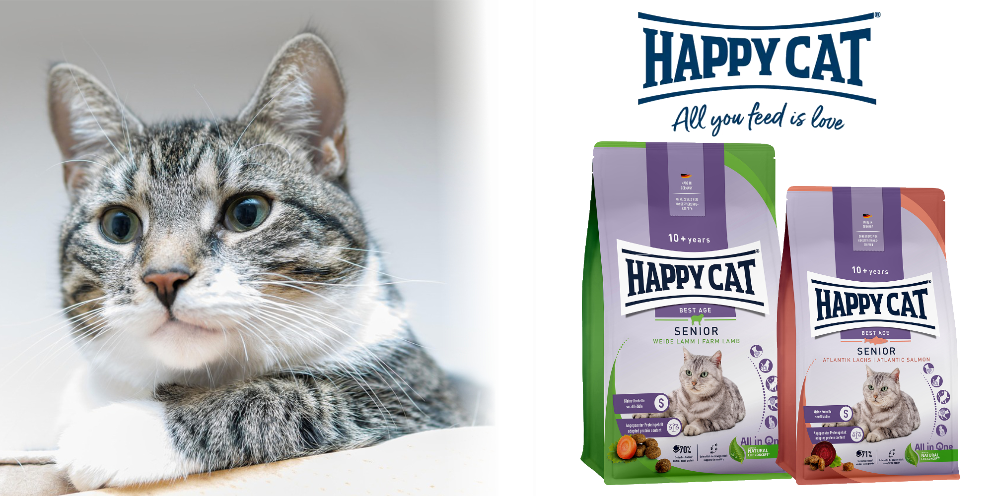 Die Rezepturen des Happy Cat Senior-Sortiments haben einen angepassten Protein- und Mineralstoffgehalt um die Organe der Seniorkatzen zu schonen. Leicht verdauliche Zutaten entlasten dabei den Stoffwechsel von älteren Katzen. Happy Cat Senior-Nahrung unterstützt gezielt ältere Katzen und sorgt so für ein langes und vitales Katzenleben.
