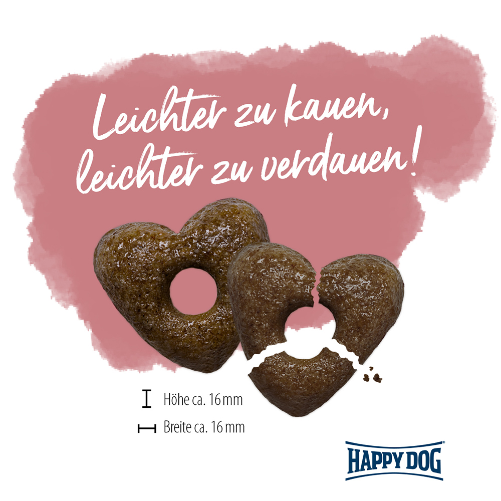 Die einzigartige Herzform unseres Trockenfutters ist für Hundewelpen leichter zu zerkauen. Durch das Loch in der Mitte zerbrechen die Kroketten schneller. Die größere Oberfläche macht sie im Magen-Darm-Trakt wiederum besonders gut verdaulich