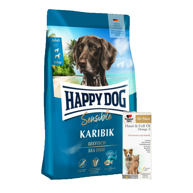 Happy Dog Supreme Karibik 11 kg + Doppelherz Haut und Fell Öl Omega-3 250 ml