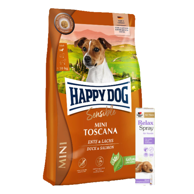 Produktinformationen "Happy Dog Supreme Mini Toscana 4 kg + Doppelherz Relax Spray 90 ml"
