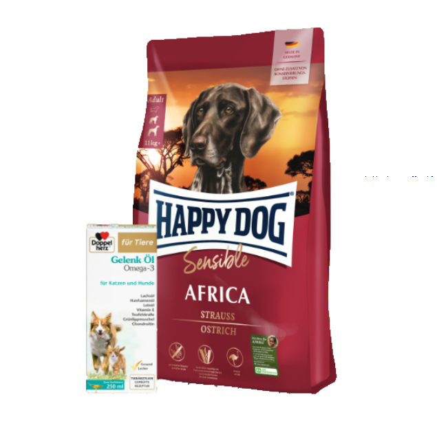 Produktinformationen "Happy Dog Supreme Sensible Africa 12,5 kg + Doppelherz Gelenk Öl Omega-3 250 ml"