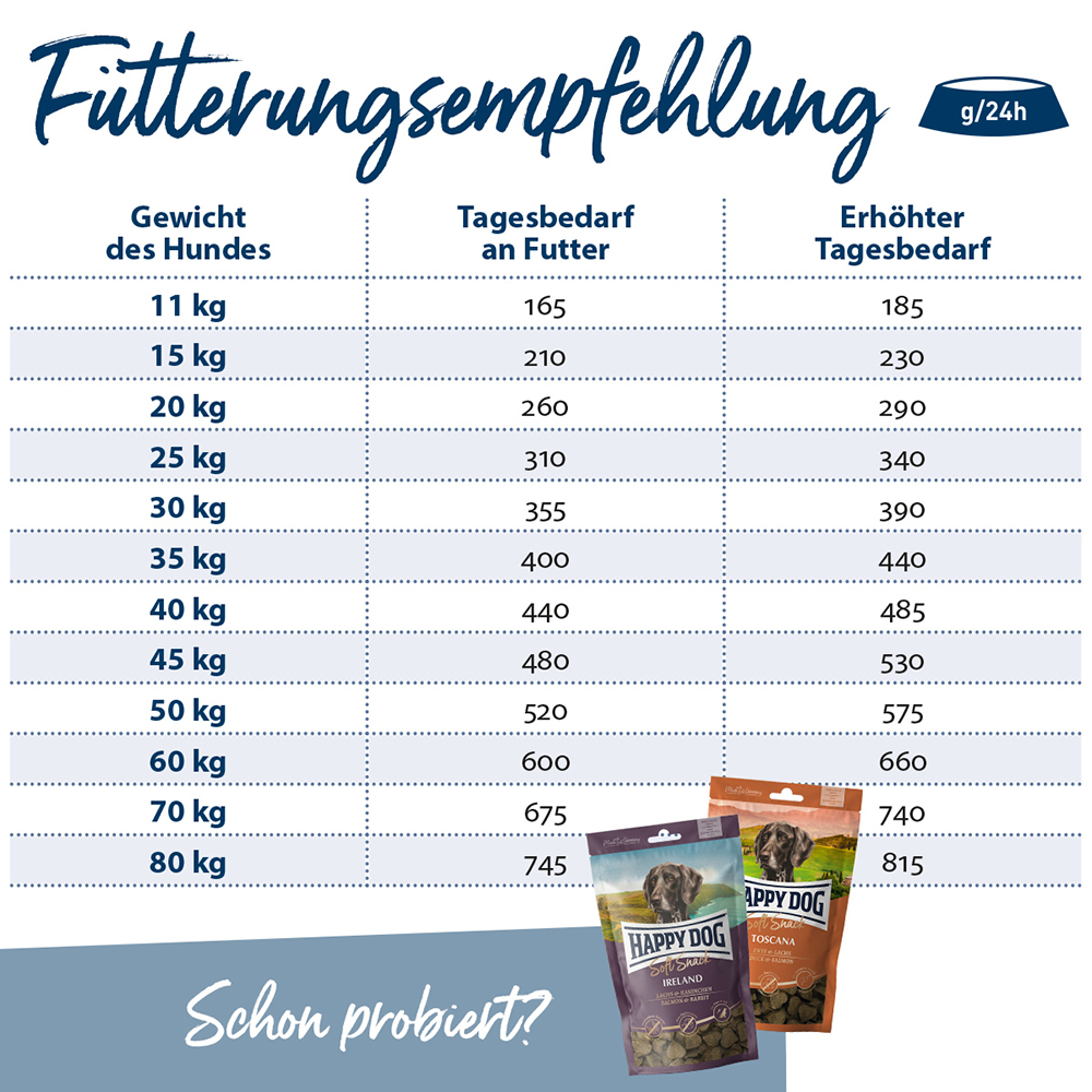 Allen Feinschmeckern, die das ganz Besondere suchen, sehr sensibel oder auch wählerisch sind, bietet Happy Dog eine einzigartige Möglichkeit: die außergewöhnlich schmackhafte Super-Premium-Vollnahrung Ireland, hergestellt mit feinem Lachs und leckerem Kaninchen.